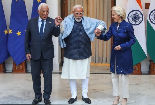 当地时间1月27日,印欧领导人在新德里举行会晤,在印度总理莫迪、欧盟委员会主席冯德莱恩、欧洲理事会主席科斯塔的见证下,印欧签署了自由贸易协定、安全与防务伙伴关系协议、印欧全面人员流动框架等多项协议。